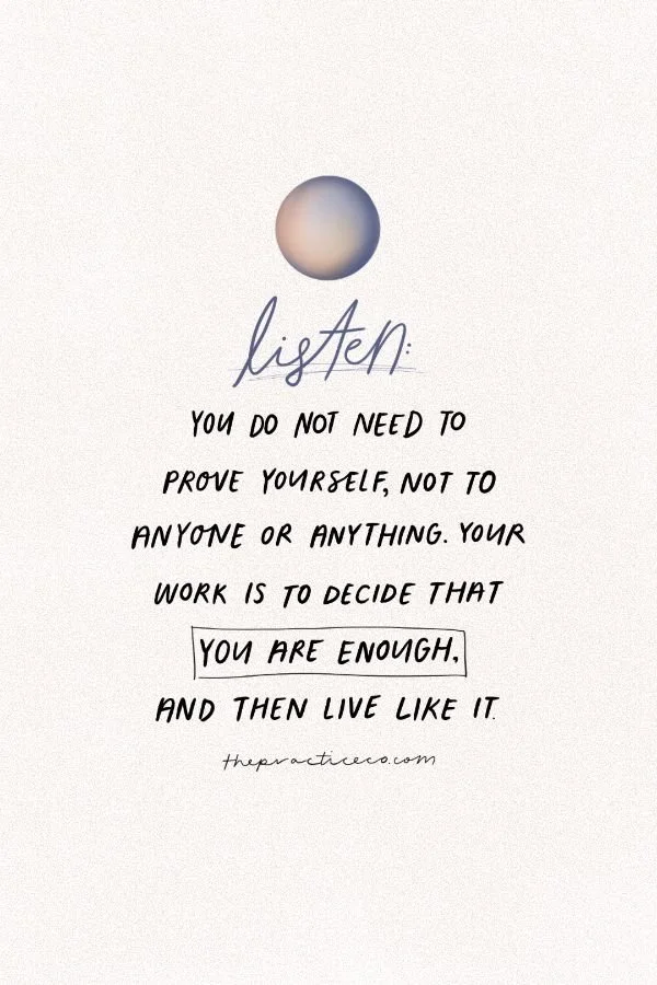 REMEMBER: You do not need to prove yourself, not to anyone or anything. Your work is to decide that you are enough, and then live like it. That in and of itself will prove many things to you about yourself, others, and the world.