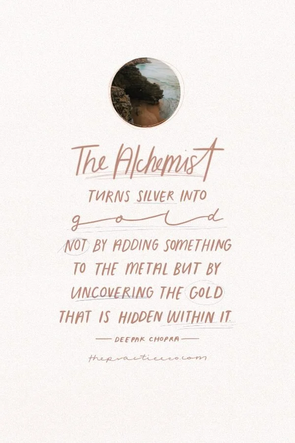 THIS WEEK IN THE PRACTICE CO APP, we’ll explore the idea that alchemy isn’t evil, and it isn’t only the practice of taking base materials and turning them into something precious, but the practice of believing that everything has a seed of gold inside it if we would be wise enough to look.