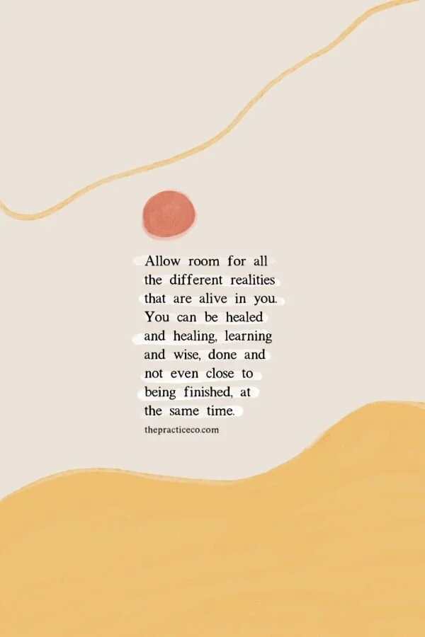 After all, the point of The Work, of showing up to your life, of being here now, is to connect into all the spaces as they give you room to do so to find the healing and the wisdom and beauty and often, just the fun, of being alive in the world.