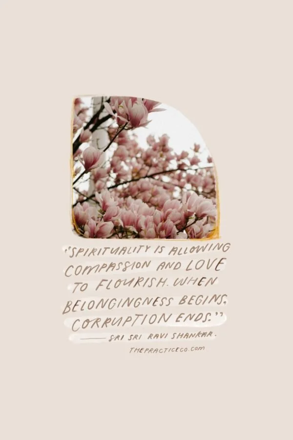 "Spirituality is allowing compassion and love to flourish. When belongness begins, corruption ends."