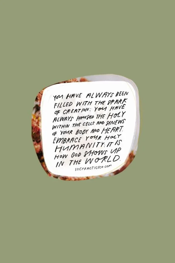 You have always been filled with the spark of creation; you have always housed the holy within the cells and sinews of your body and heart. Embrace your humanity, it is how God shows up in the world.